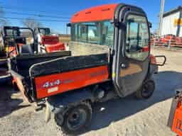 Used, 2011 Kubota RTV1100CWXL-H utility vehicle. 3 cyl., 24.8HP diesel engine. VHT+ transmission with speeds up to 25mph in high range. Hydrostatic power steering and hydraulic cargo bed lift. HDWS tires. Spray on bedliner.