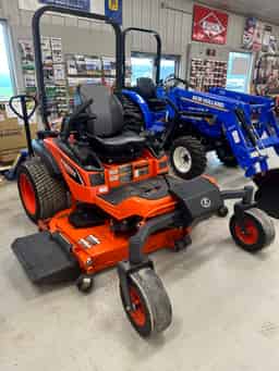 Used, 2019 Kubota ZD1211L72 zero turn mower. 3 cylinder, 23.8HP diesel engine. 72″ right hand discharge deck; shaft drive, hydraulic lift, 1-5″ cut height increments. Adjustable suspension seat. 1 previous owner; 630 hours on the meter.
