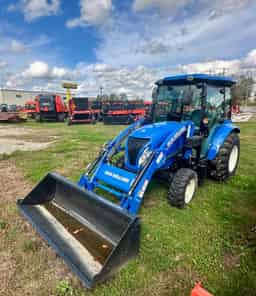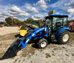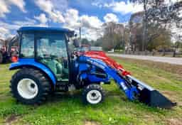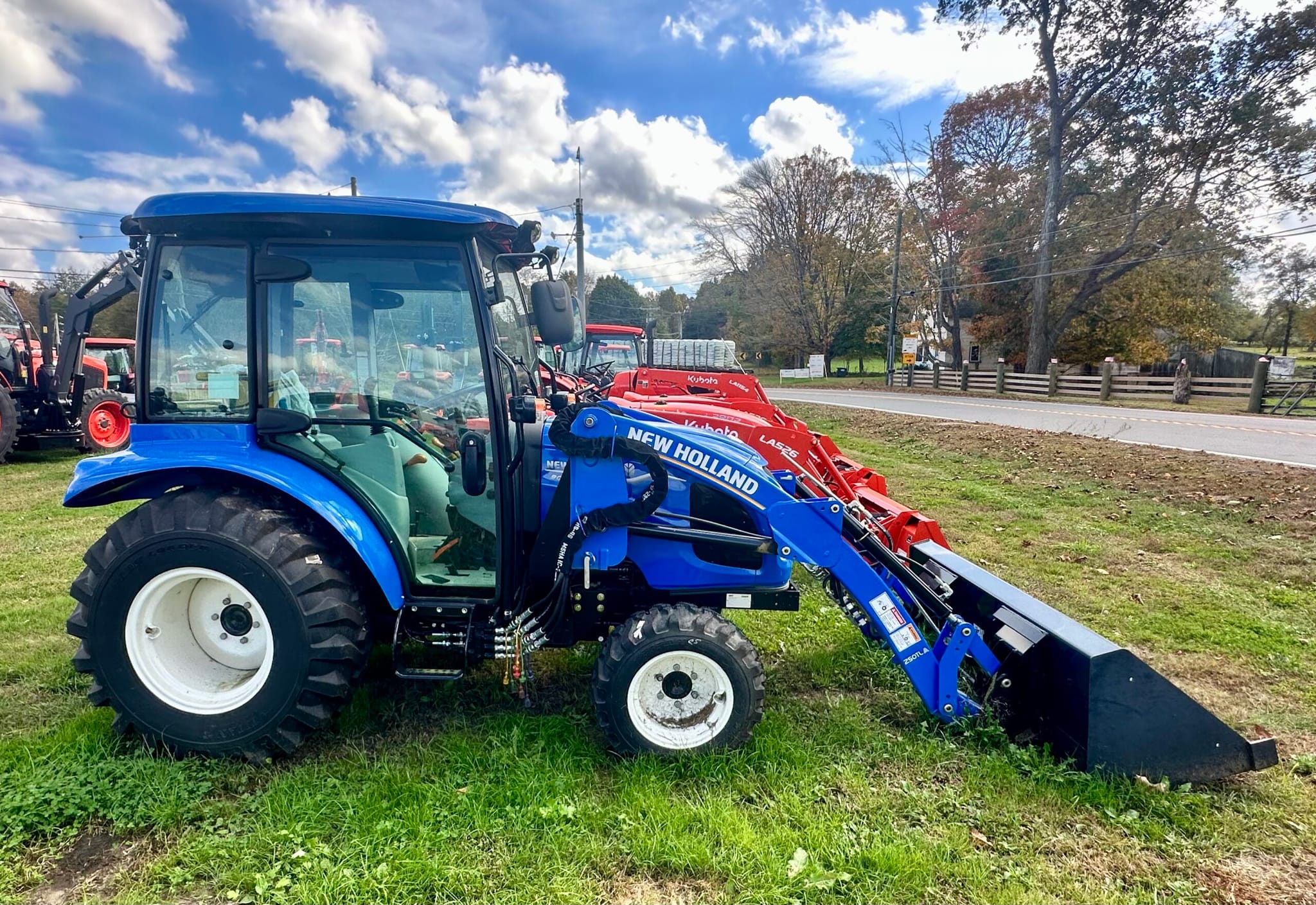 New, 2024 New Holland Boomer 40 cab tractor, with 250TL loader. R4 tires, mid-PTO, hydrostatic transmission.